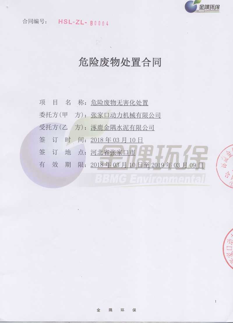 張家口動(dòng)力機(jī)械有限公司危險(xiǎn)廢物處置合同公示